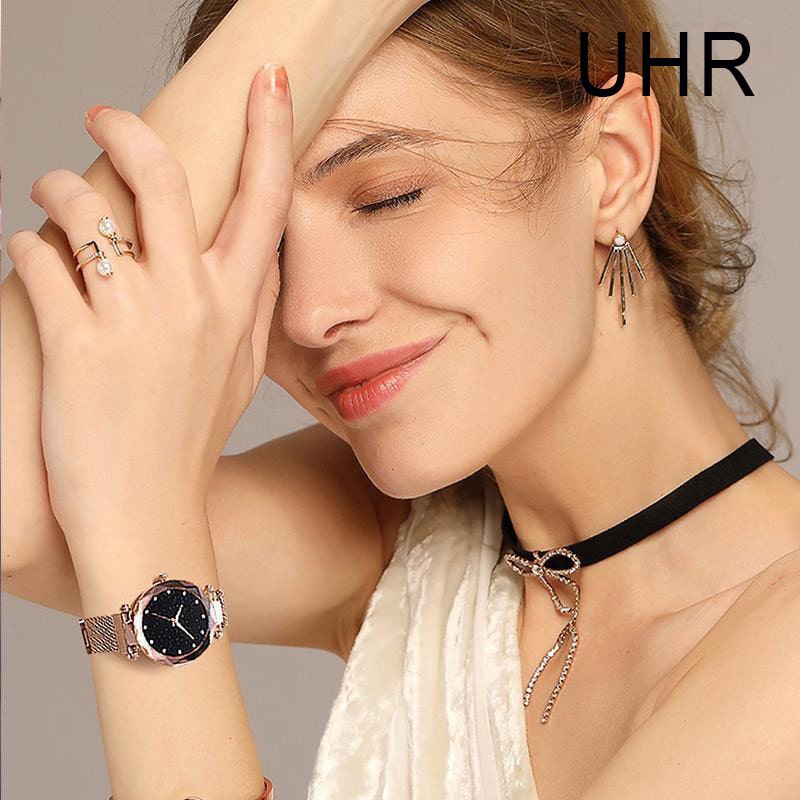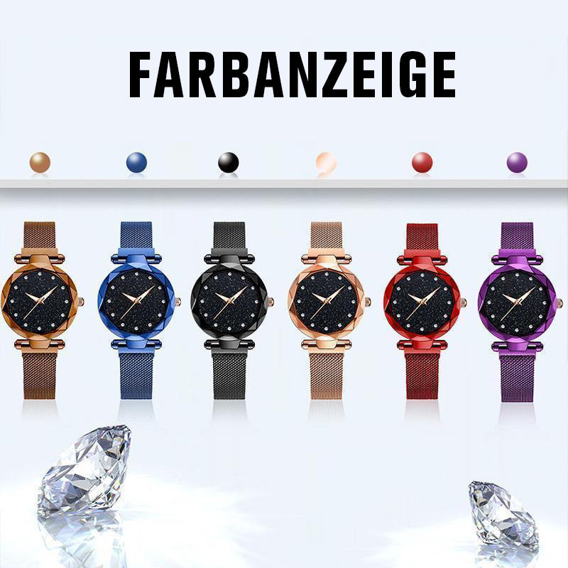 Diese modische Quarzarmbanduhr im klassischen Look wurde speziell mit einem Magnetband entworfen. Das modische Sternenhimmel-Design macht es atemberaubend.
