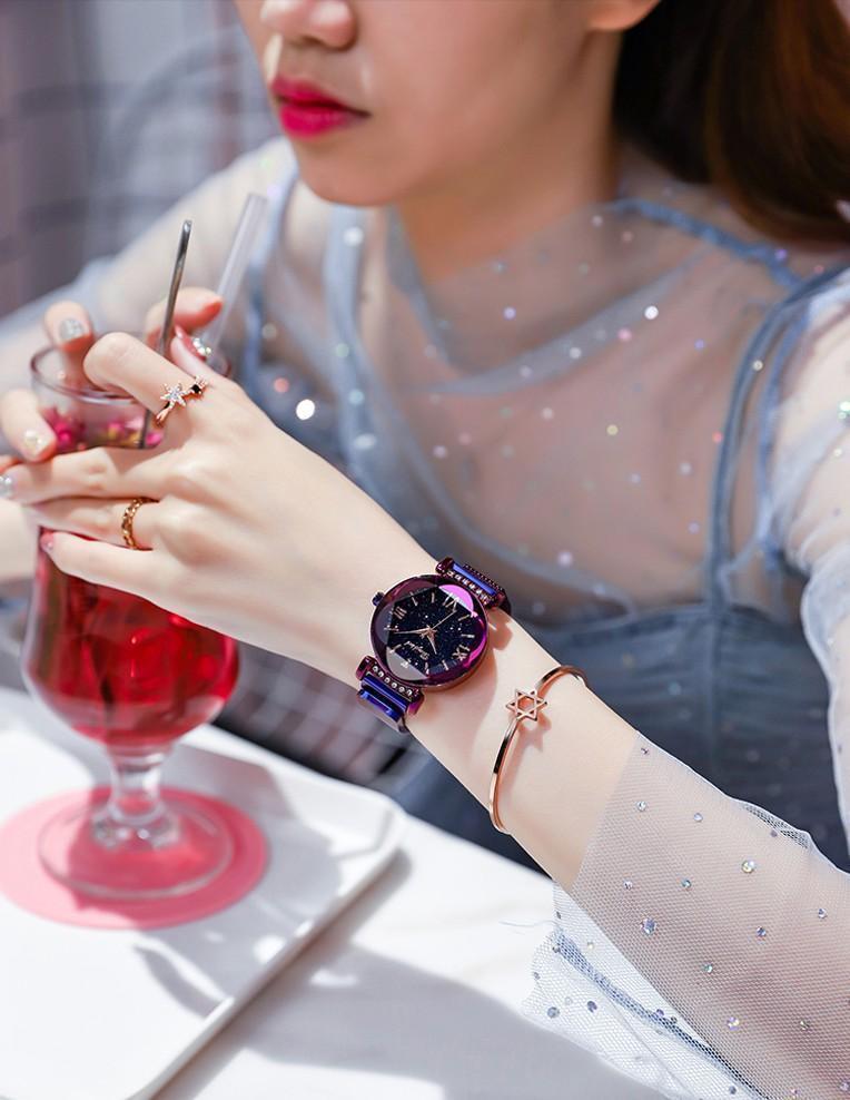 ( Im Sale 52% ) Damen Magnetband Quarzarmbanduhr Sternenhimmeluhr (mit Geschenkbox)