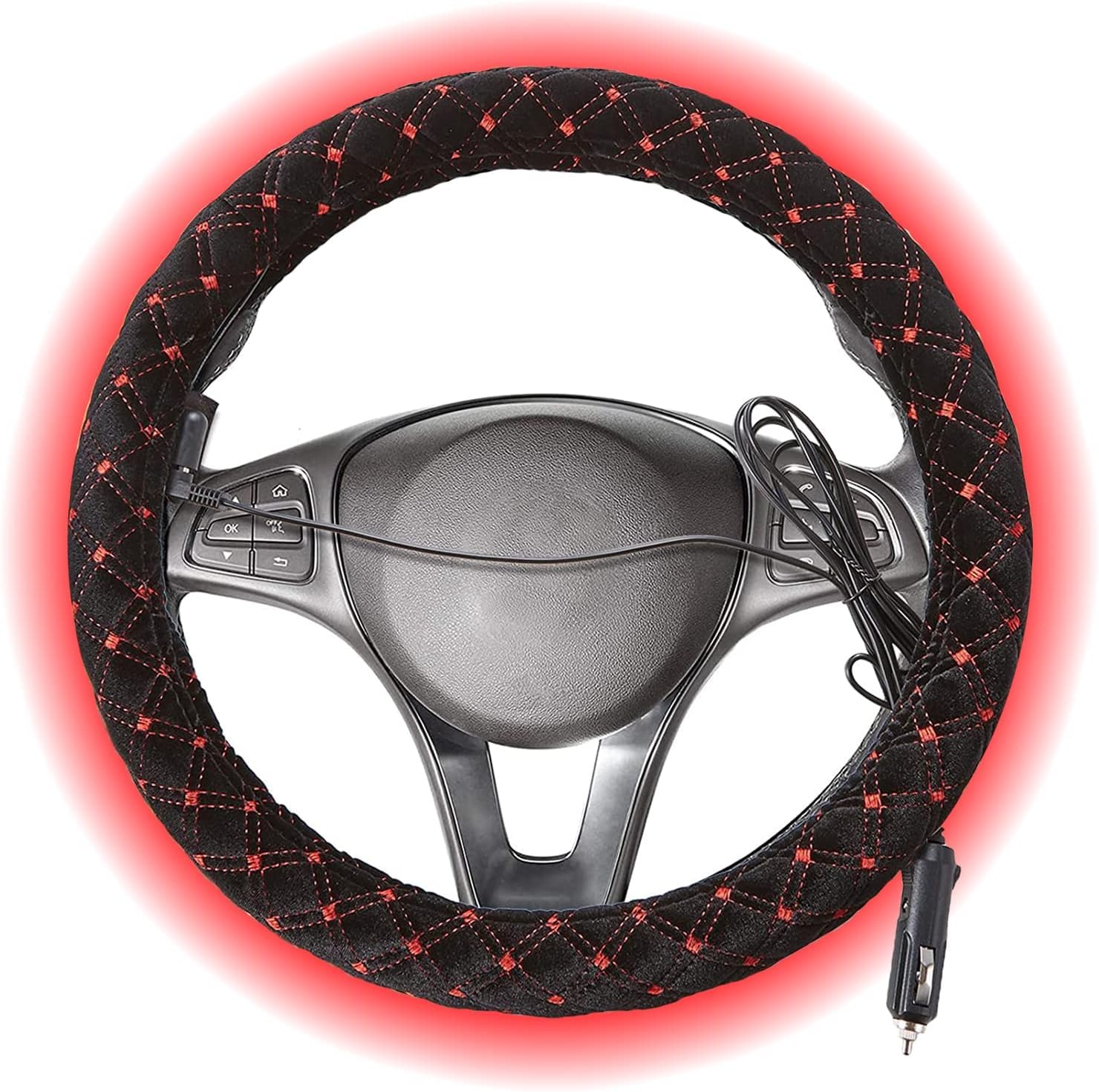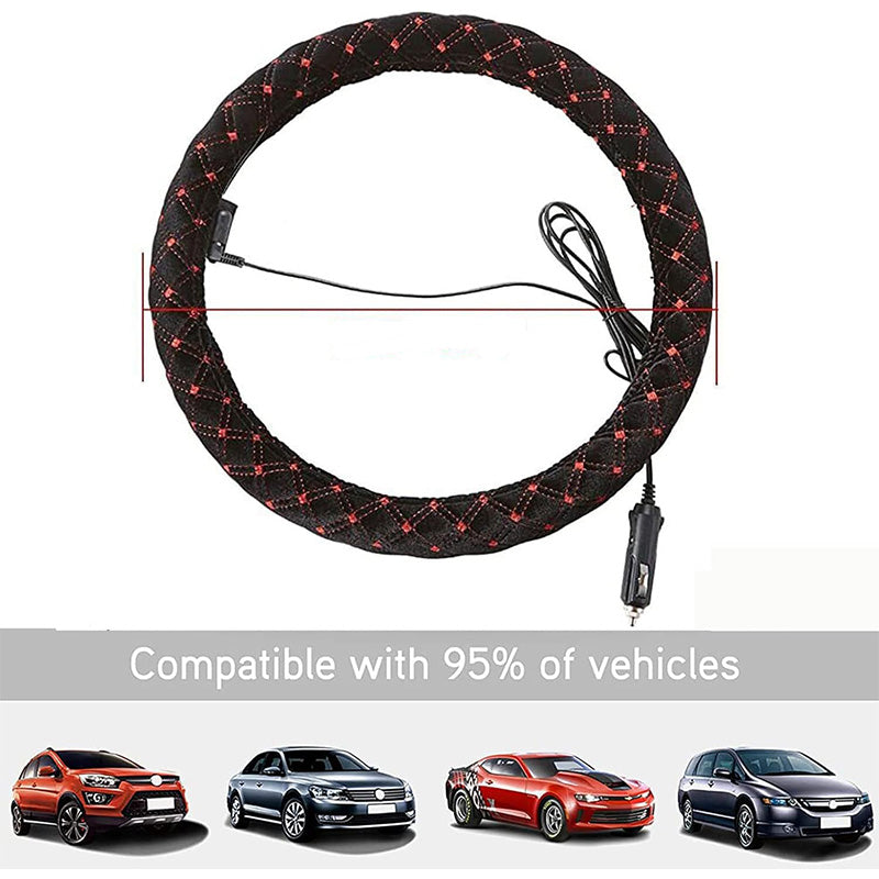 Die beheizte Lenkradabdeckung ist ein Muss für Dauerreisende, Taxifahrer, Fahrgemeinschaften und Menschen, die in kälteren Klimazonen leben, sowie für jeden Autobesitzer im Winter. Es bietet Wärme und Komfort für Ihre Hände und sorgt für ein komfortableres Fahren. Darüber hinaus verschönert die Abdeckung Ihr Lenkrad und schützt es vor Kratzern.