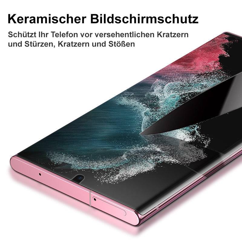 Die Galaxy S23 Ultra Displayschutzfolie verwendet ein 3D-gewölbtes Hybridglasdesign, um das gesamte Display zu schützen. Der präzise Zuschnitt und die einzigartige 3D-gekrümmte flächendeckende Schneidetechnik schützen den Bildschirm Ihres Mobiltelefons in alle Richtungen und lassen an den vier Seiten des Bildschirms Platz für die Hülle.