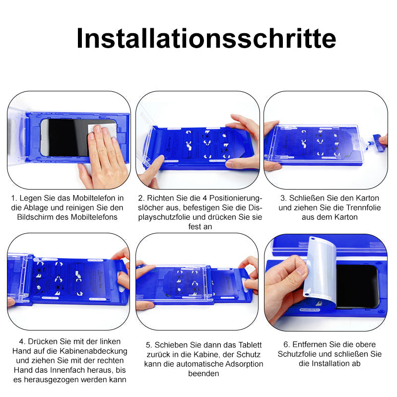 Die blau/gelbe, automatisch ausgerichtete Displayschutzfolie für das Galaxy S23 Ultra ermöglicht eine einfache, blasenfreie und rückstandsfreie Anbringung der Schutzfolie. Die Staubentfernungsfolie absorbiert Staub durch statische Elektrizität. Sie wird lückenlos und blasenfrei auf dem Handy-Display angebracht, sodass die Berührungsempfindlichkeit nicht beeinträchtigt wird.