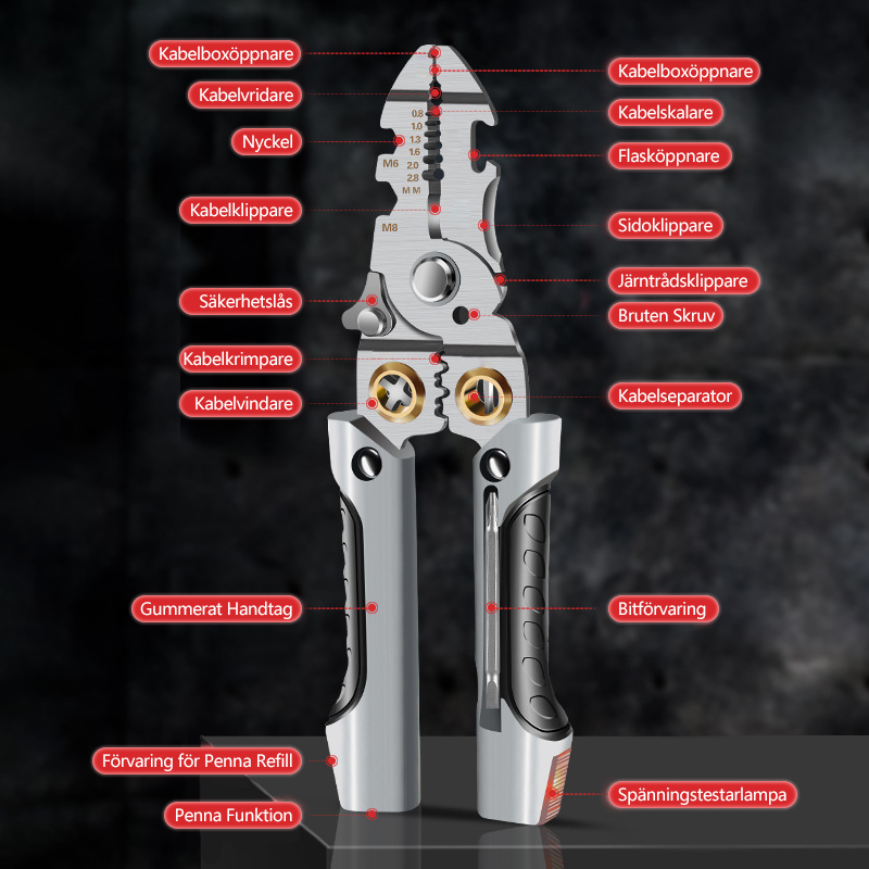 MEHRSEITIGE 21-I-1-FUNKTIONALITÄT - Abisolieren, Verdrehen, Schneiden, Crimpen, Klemmen und mehr. Ideal für Elektriker, Heimwerker oder alle, die mit elektrischen Leitungen arbeiten, ein komplettes Werkzeug für jede elektrische Aufgabe.