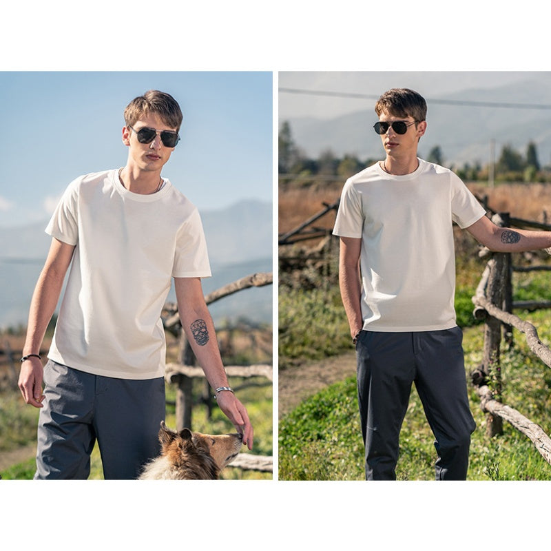 ATMUNGSAKTIVES MATERIAL – Den ganzen Tag kühl bleiben: Dieses kurzärmlige T-Shirt besteht aus einem luftigen, hautfreundlichen Material, das dich auch an warmen Tagen angenehm kühl hält. Perfekt für Spaziergänge oder Entspannung zu Hause – der Stoff lässt Luft durch und verhindert Überhitzung und Unannehmlichkeiten.