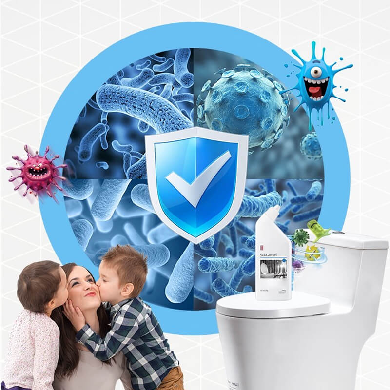 Der anorganisch-saure Toilettenreiniger wurde getestet und tötet nachweislich 99,9 % der Badezimmerviren und -bakterien* (bei vorschriftsmäßiger Anwendung).