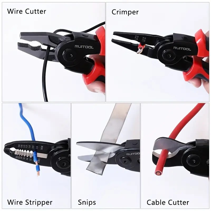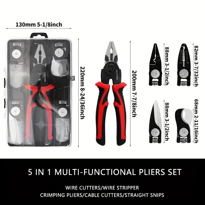 🔥Kostenlose Lieferung✈5-in-1-Zangenset, Mehrzweckzange mit austauschbarem Kopf, Hochleistungs-Kombizange Abisolierzange/Schneider/Krimpzange